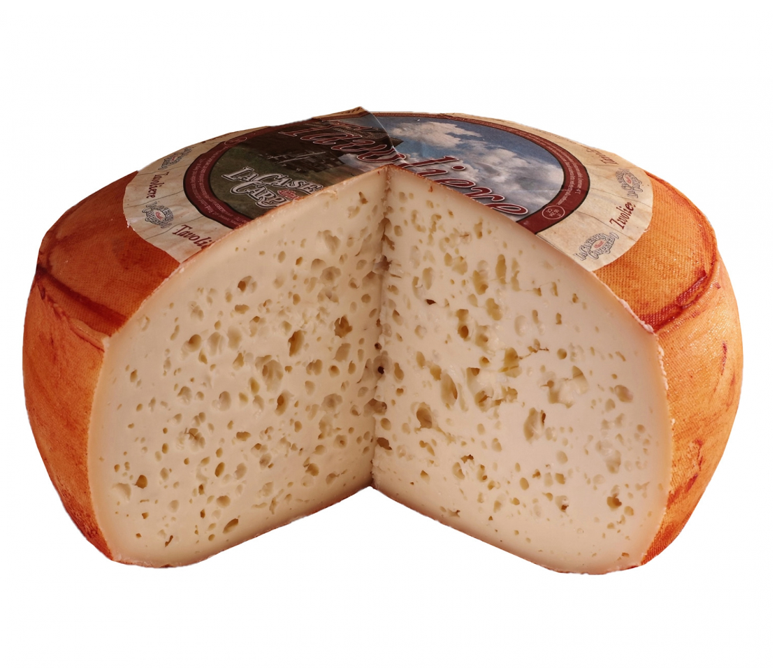 Tavoliere cheese is a unique cheese that embodies the essence of Venetian tradition. The cheese is semi-firm in texture made from pasteurised milk. The interior of the cheese is pale yellow in colour and has a distinctive appearance as it is riddled with random sized eyes. The cheese melts in your mouth releasing notes of butter and fresh milk, the flavour is delicate with a slight tang while the aroma is reminiscent of yoghurt and butter, displaying the terroir of the Veneto region. It is matured for a minimum of 45 days with a natural rind and treated with a natural colourant and olive oil.